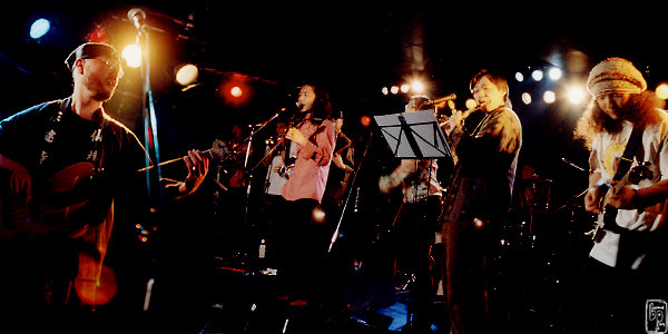 森竹忠太郎さん(ギター)奥田やすひろさん(ドラム)荻野あつしさん(トロンボーン)並木プリンさん(サックス)